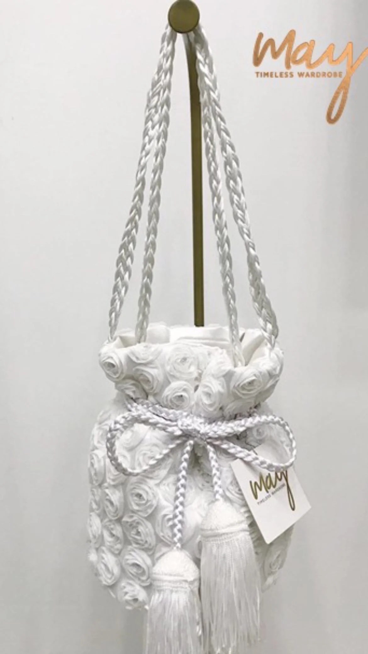 La mochila de alta costura COQUETTE BLANCA es en un 60% diseñada a mano. Nuestra marca hace un homenaje a la cultura de las mochilas Wayuu Colombianas. Se caracteriza por sus finos acabados y su versatilidad al usarlas de tres maneras diferentes así como su calidad ,contiene 5 capas de tela, y una trenza hecha a mano para la facilidad del comprador a la hora de abrir y cerrar la mochila. Se ha elaborado en Cali / Colombia con los mejores materiales. Presenta un interior espacioso de 18 cm de diámetro por 22 cm de altura, con un compartimento con cremallera adicional además de un emblema de la marca bañado en oro de 18 kilates. La correa de trenza es ajustable para llevar de bandolera, cruzada o de la manija de Cuencas, extraíble.